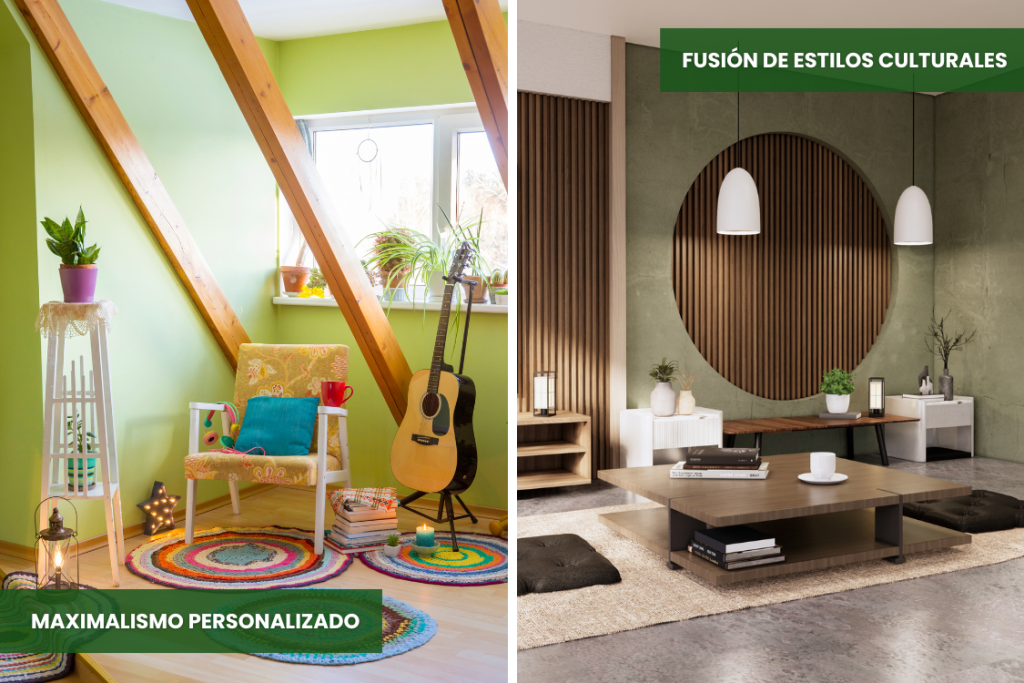 La globalización inspira una mezcla ecléctica de influencias culturales en los interiores. Desde toques mediterráneos con cerámicas pintadas a mano y textiles vibrantes hasta elementos orientales como paneles de madera tallada y lámparas de papel, esta tendencia celebra la diversidad. Los interiores se convierten en un lienzo donde se combinan piezas modernas con objetos artesanales, creando espacios únicos que cuentan historias personales y conectan a los habitantes con diferentes culturas.
