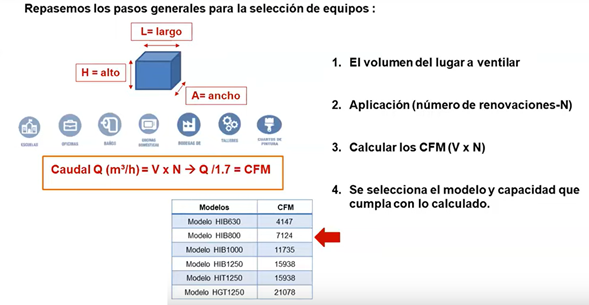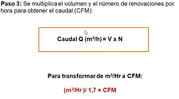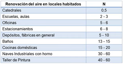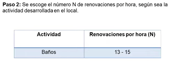 Se refiere al número de cambios de aire que se recomienda en una hora.