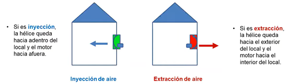 En la inyección se introduce aire fresco al lugar, mientras en la extracción se extrae aire caliente o partículas contaminantes del lugar.